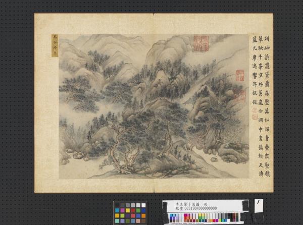 列岫染濃黛。蕭森壓萬松。深青疊衆壑。積翠映千峯。空外蒼嵐合。澗中素藹封。天濤盈凡席。逸響耳根從。 |