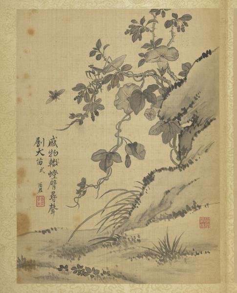 清蔣廷錫仿宋人花鳥 冊 牽牛螳螂 White-edged Morning Glory and a Praying Mantis |