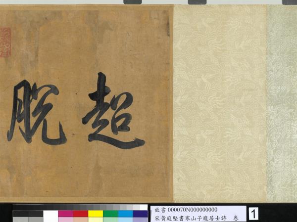 元符二年至三年間(1099-1100),黃庭堅謫居戎州(四川宜賓),於齋館「任運堂」試筆,書唐代僧人寒山子與龐居士詩作,然寒山子詩第三首後半與龐居士詩已佚失。此卷墨色腴潤飽滿,筆法控馭自如,反映參禪修行對他生活及創作的深刻影響,為晚年重要的大字行書。 黃庭堅(1045-1105)字魯直,號涪翁、山谷道人,江西分寧人。他擅長於詩文、書法,和蘇軾、米芾、蔡襄並列為北宋四大書家。(20061206)