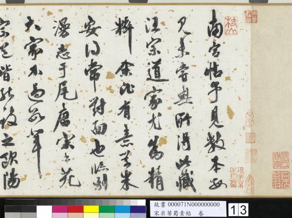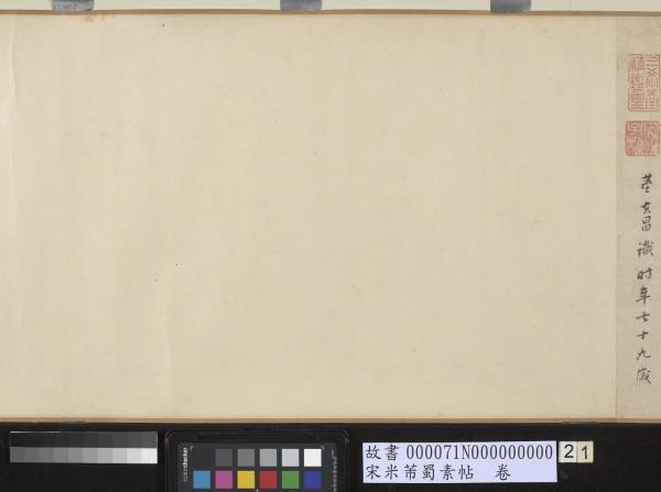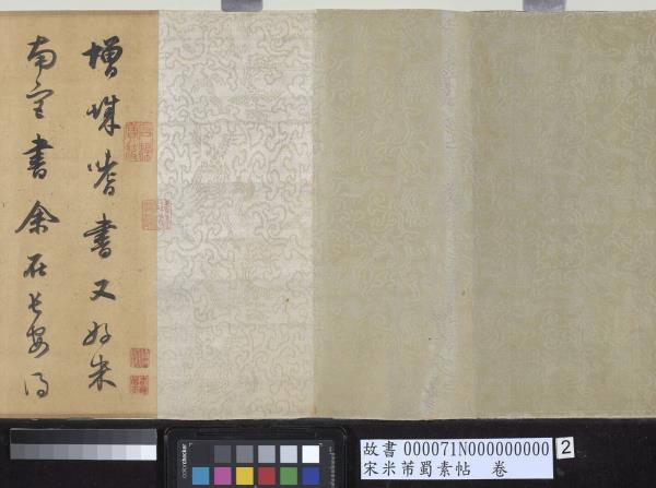 參考書目 國立故宮博物院編輯委員會,〈宋米芾蜀素帖 卷〉,收入《故宮書畫菁華特輯》(臺北:國立故宮博物院,1996.10),頁34-37。