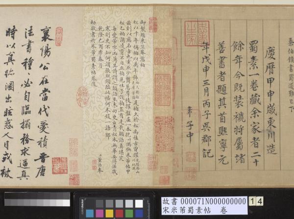參考書目 〈宋米芾蜀素帖 卷〉,收入李玉珉、何炎泉、邱士華主編《妙合神離-董其昌書畫特展》(臺北:國立故宮博物院,2016.01),頁56-59、380。