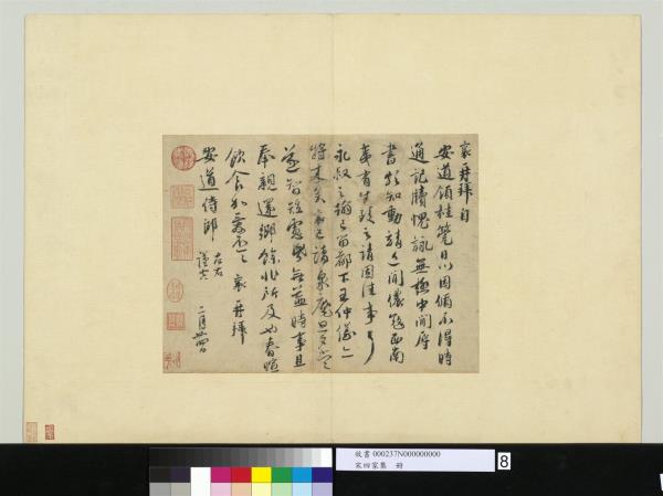 | 參考書目 | 1.〈致安道侍郎尺牘〉,收入何傳馨、陳階晉、何炎泉編,《故宮法書新編 (八) 宋 蔡襄墨蹟》(臺北:國立故宮博物院,2011年九月初版一刷),頁48-50。 |