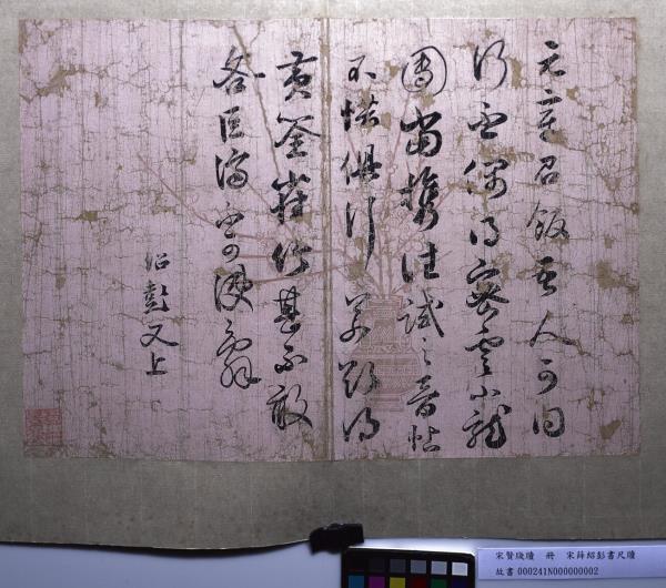 | 參考書目 | 何炎泉,〈宋賢牋牘 冊 宋薛紹彭尺牘〉,收入《宋代花箋特展》(臺北:國立故宮博物院,2017.12),頁84-85、224。 |