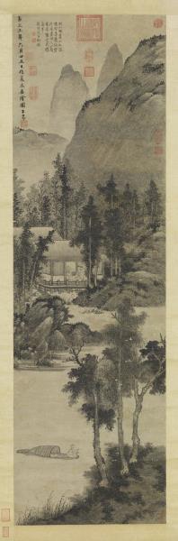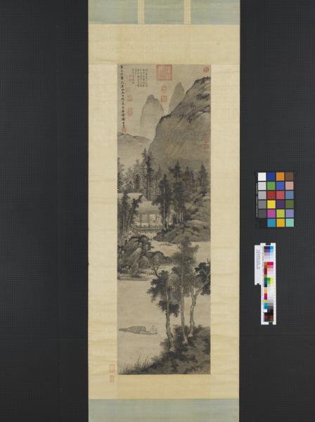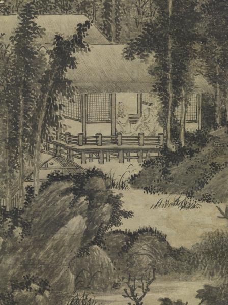 樹如張蓋山如滴。搘架茅齋俯碧泠。永晝同人一商榷。應緣定武獲蘭亭。乾隆戊寅御題。 |
