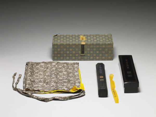 | 說明 | 八方柱狀墨,質堅緻。一面有陰文填金篆字︰「臨池真賞」,另面有陰文填藍隸書︰「 寶恩堂藏墨」,下鈐填金方印二︰「清玩」、「人生一樂」;兩側有陽文小字楷款︰「康熙丙申年製」、「汪希古造」。汪希古為清初歙人。《(乾隆)歙縣志》述製墨名家謂︰「而近則曹素功……同時居肆如吳守默、汪希古、葉公侶類,皆譽擅黑松。……」本墨作於康熙五十五年(1716 ),邱學敏《百十二家墨緣》中另有「康熙五十三年歙縣草莽臣汪希古」款的墨,則汪希古活躍於康熙後期,其墨曾上貢供卿。 |